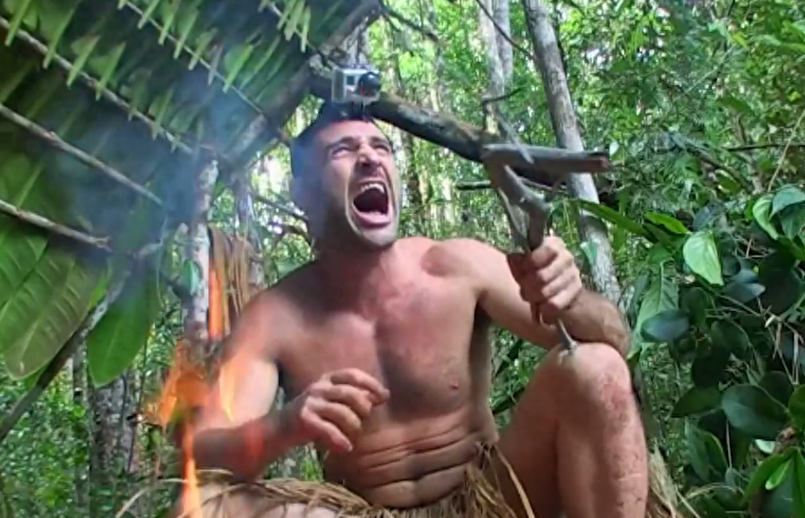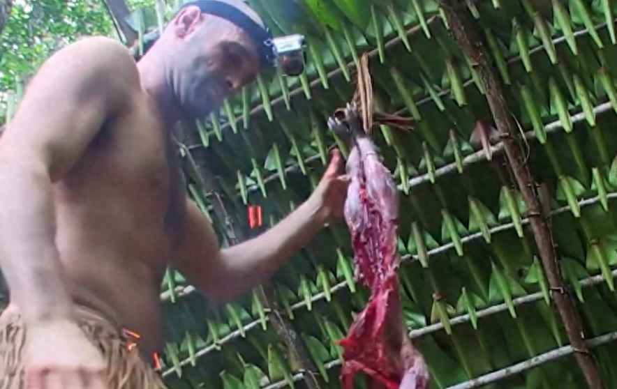 经过了4800秒的不懈努力,火终于升起来了,接下来就是德爷的大型返祖表演,一通狂吼之后,德爷马上开始熏肉,一激动还把自己的草裙点了,你这是打算和皮卡丘同归于尽吗。