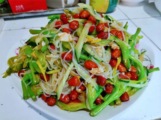 1.食材:花生米、黄花菜、黄瓜、粉丝、香菜,