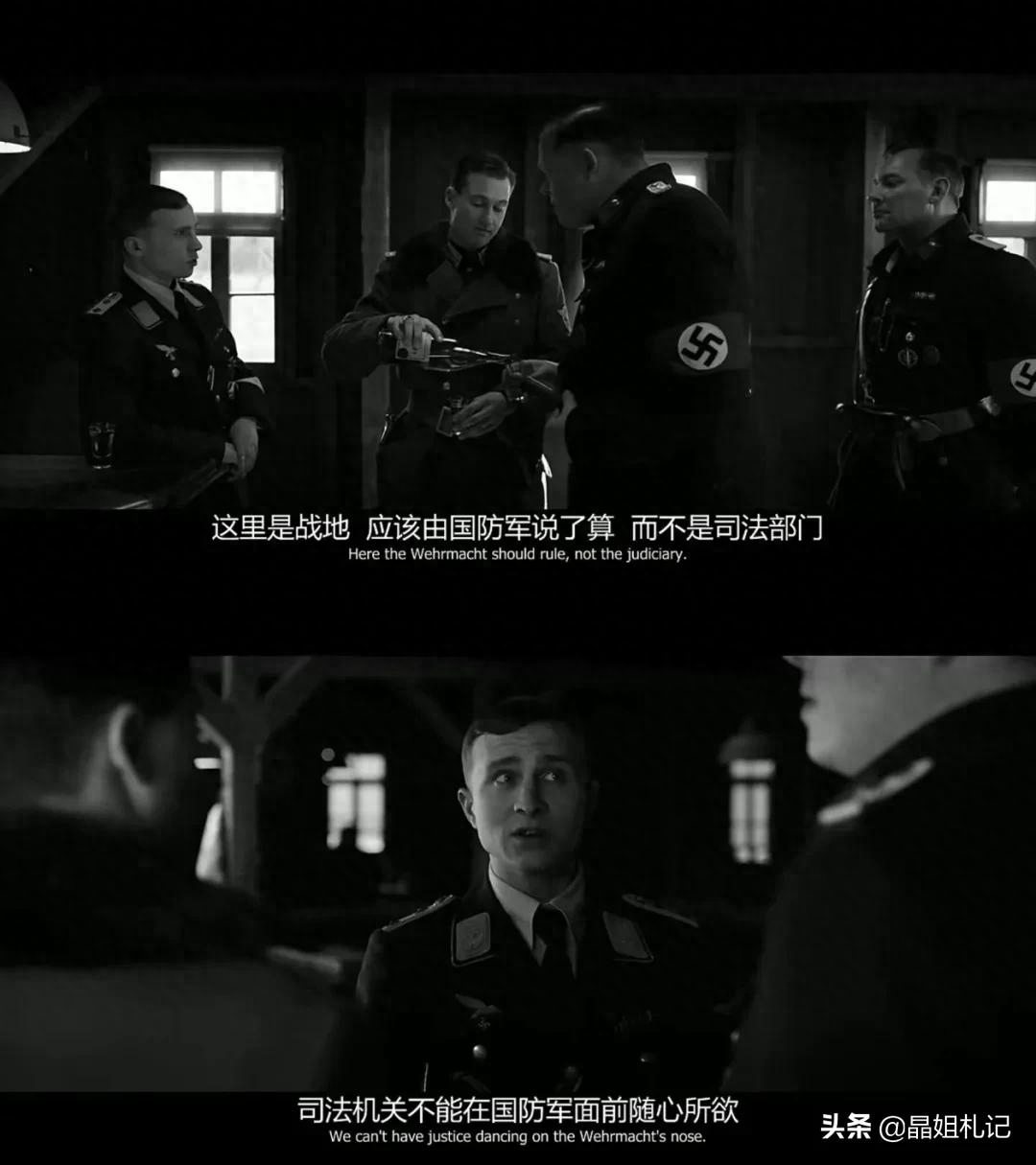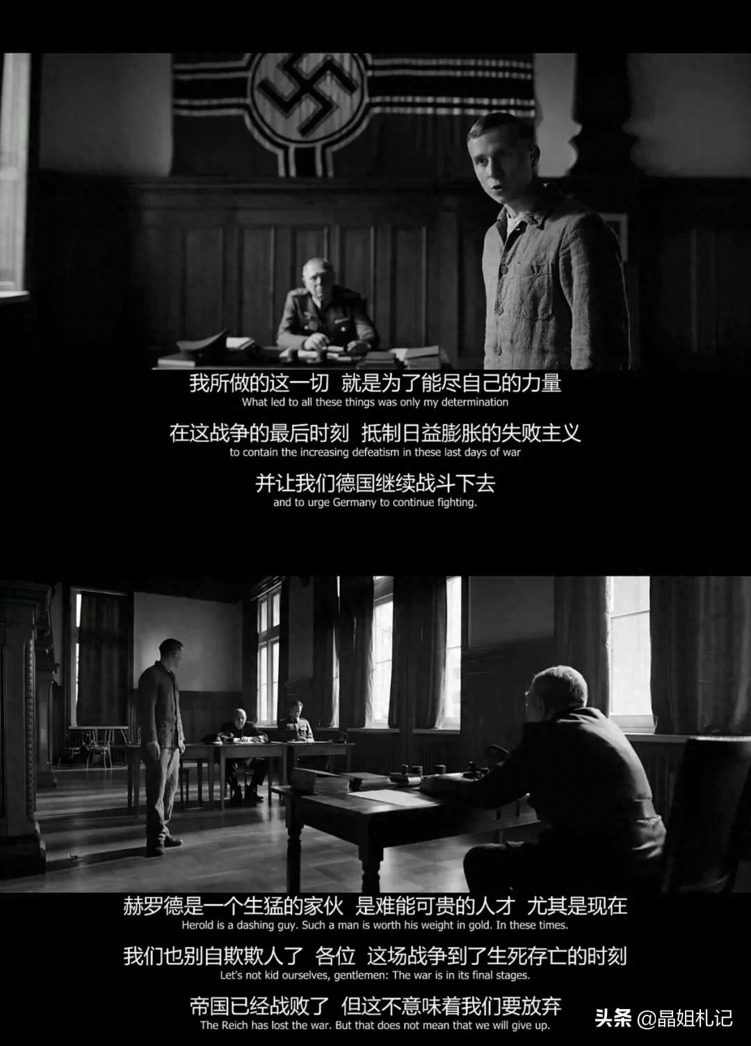 当赫罗德的冒牌身份被拆穿,在军事法庭接受审判时,容克上尉和旁边的纳粹高层却向法官求情,说如今摇摇欲坠的帝国需要赫罗德这样的人才,可见帝国的意志显然已经凌驾于法律之上。