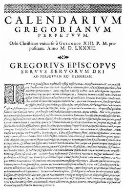 ►格里高利十三世在其教宗诏书(Papal bull)中首次颁布其历法,图为诏书扉页。来源:http://personal.ecu.edu/MCCARTYR/inter-grav.html