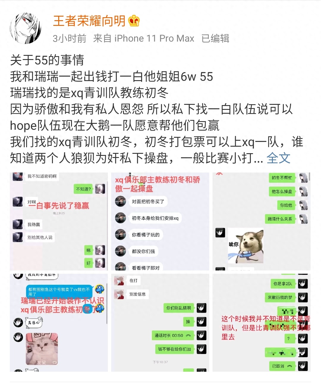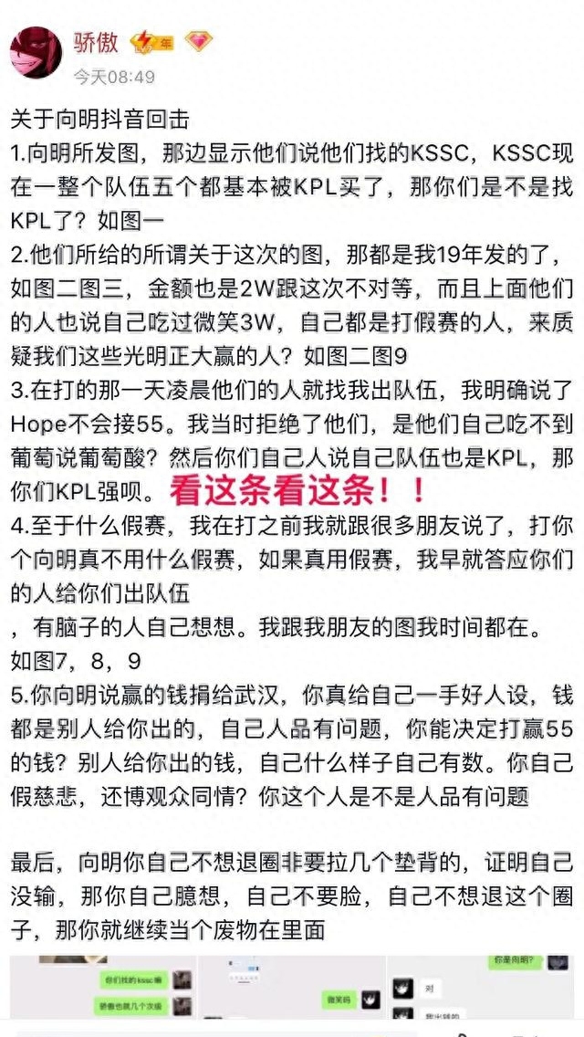 随后一白方面就对向明的质疑做出了回应,思路比较清晰,首先就是向明质疑自家的橘右京打假赛,收了一白的钱。但是本身这两个人就是导演,天天安排别人打假赛,最后被自己的人演了,实在是有点好笑。而且向明把脏水泼到了职业选手初冬身上,还说自家的选手是XQ的二队,但是初冬本人很快就否定了这一点,表示没有参与过这次的事件。双方用的账号辨识度都不高,除了他们双方之外,其他人可能都不知道到底是谁在打。就算是这些账号被辨认出来,也未必能够证明是本人在玩。