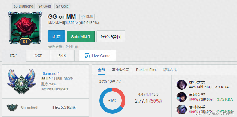 目前微笑高学成的LOL韩服ID为“GG or MM”,相信喜欢看微笑直播的朋友都知道这个ID是什么意思,作为LPL老干部级别的选手,微笑高学成经常在直播中询问队员是“GG or MM”。截止小编发文时间,微笑最近20场LOL韩服排位赛胜率为65%,目前的段位要比RNG上单Letme和打野MLXG还要高!