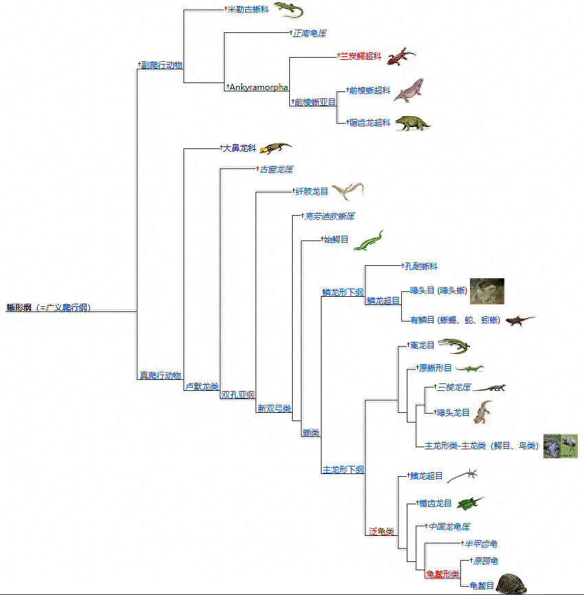 按照传统的认知,都是认为两栖动物进化成爬行动物以后,一支演化为哺乳动物,另一支演化为鸟类,但这种划分方法早已过时。事实上哺乳动物的祖先,和爬行动物与鸟类,在三亿多年前的石炭纪晚期就已经分家了。在石炭纪的后期,两栖动物中有两支同时进化出了羊膜并开始适应陆地生活。