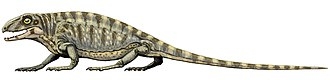 生活在石炭纪末期的盘龙类蛇齿龙,体长已达3米多,它们可能生前覆盖着角质鳞甲。