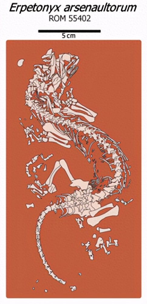 Erpetonyx假想图,它可能肉食性,可能有多种骨骼特征,身体细长,有着大的爪和强大的肌腱附着点。