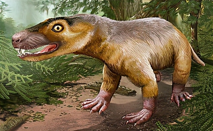犬齿兽类的鼩龙兽最早出现于二叠纪最末期,有完整的次生颚,进食时仍可呼吸,口鼻部宽广,具有直立四肢。