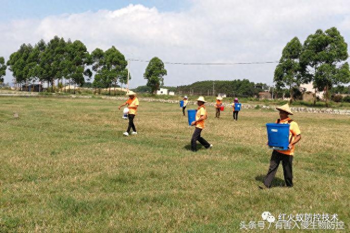 红火蚁攻击性强、危害巨大,防治主要依靠药剂防治,核心是消灭蚁后。防控适期:根据当地气候,每年两次,一次在春季婚飞前或婚飞高峰;一次在夏秋气候条件适宜时。