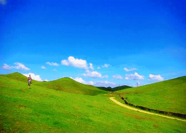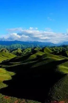 相比北方略显单调的大草原,南山牧场似乎多了份南方人的多情。这里的牧场看起来更像一座小山丘。一眼望去,80公里的大南山就像无数绿色的蒙古包散落在天幕下,大小不一,形状圆润。
