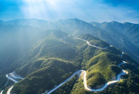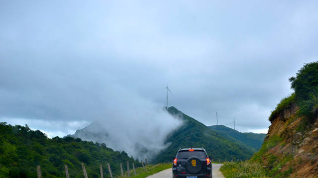 沿着一条小路行驶,我希望能在更高的地方尽览群山。南山有丰富的风力资源。大唐华银湖南新能源公司投资建设的南山风电场,被誉为“云中电场”。