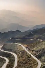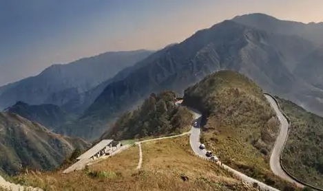 从路边向天空望去,一眼望不到头,层层山峦像地平线一样波涛汹涌,远山的轮廓在地平线上起伏,与之相连,直至消失在遥不可及的地平线里。