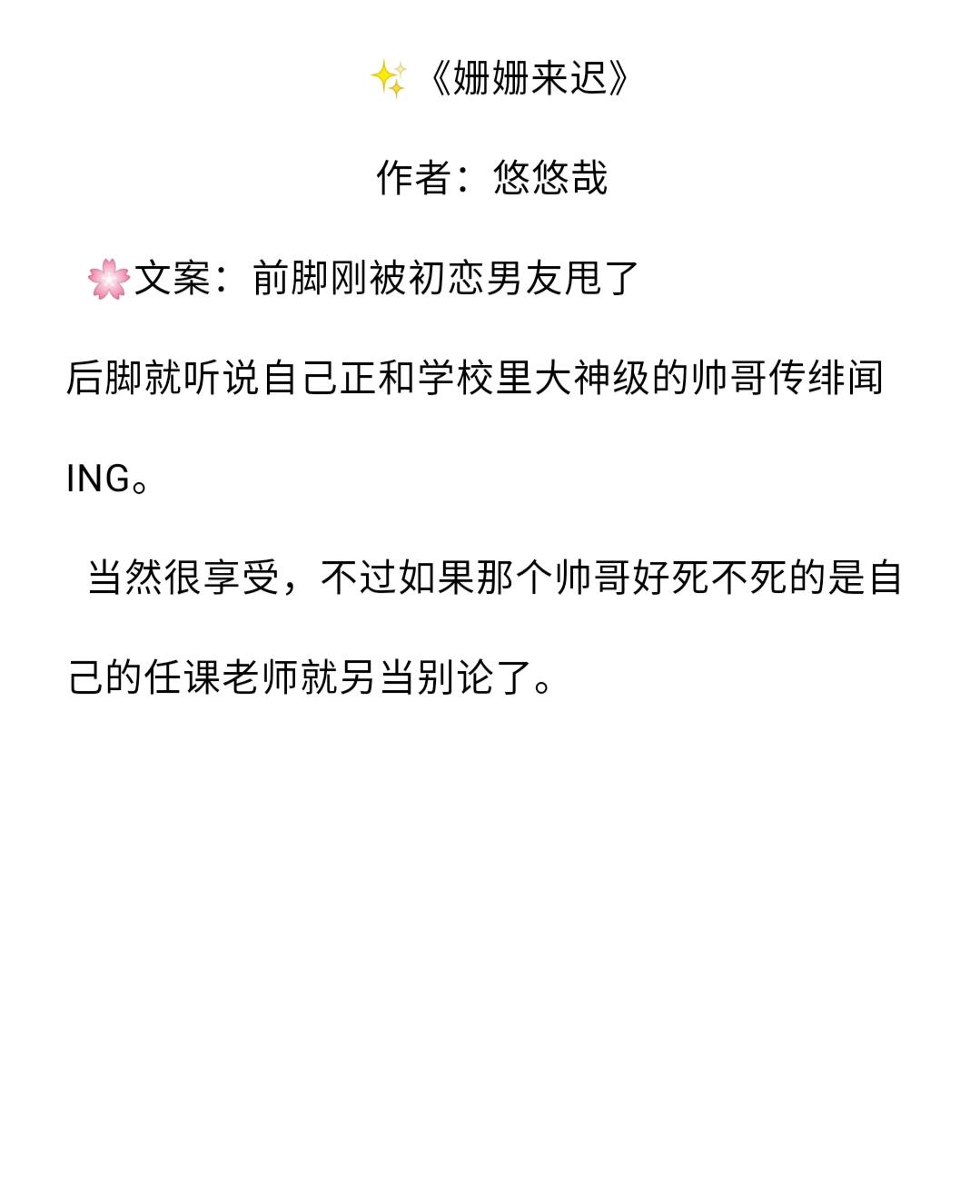 简评:爱情可能会姗姗来迟,但从不会缺席。作者文笔幽默诙谐,贴近生活,轻松自然,但不是为了搞笑而搞笑,,不是小白文,书荒可以一看哦。