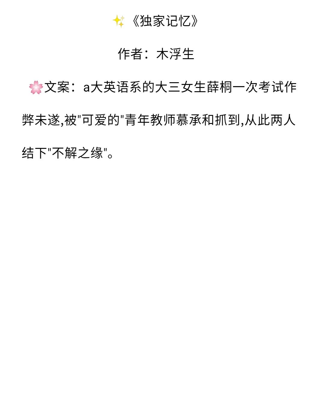 男主教授文七本:《至此终年》《独家记忆》撩而不自知!