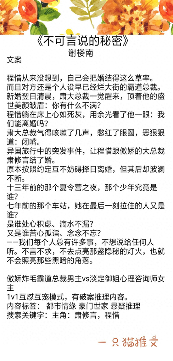 作者的上一本《离婚?甭想了!》挺好看的。最新完结这本是《离婚甭想了》里面男主哥哥的故事,也挺好看的,喜欢豪门联姻的不容错过!