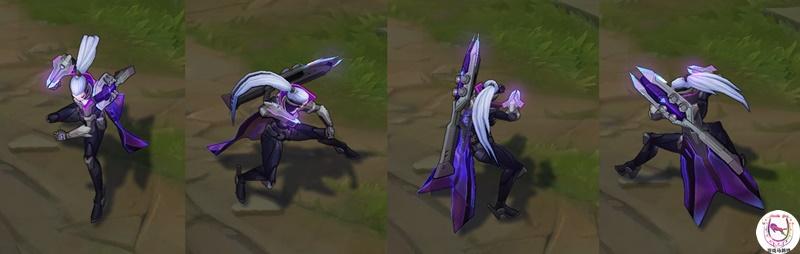 VN在使用大招后武器会变成一把巨弩,而且她的钉墙技能射击动作在普通模式下是跳起来射箭。大招的隐身是紫色迷雾,战斗力爆表的一款皮肤。虽然Uzi无缘决赛拿皮肤,但是这款VN也不错!