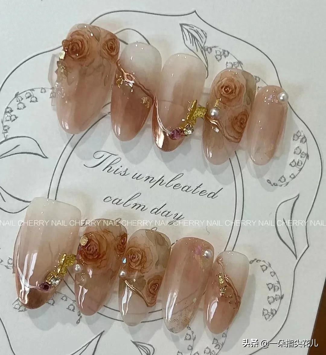 第九款:茶色晕染加水彩玫瑰。魔镜粉勾边。欧洲宫廷复古感。