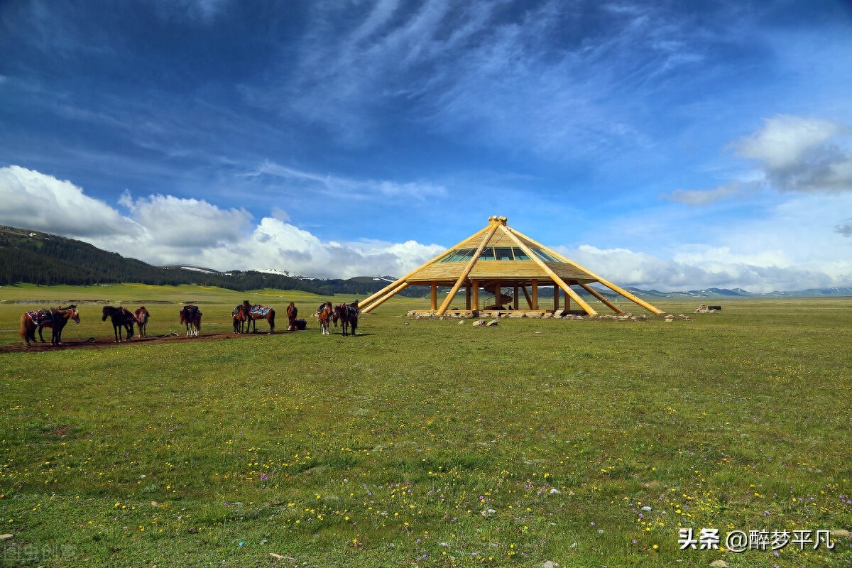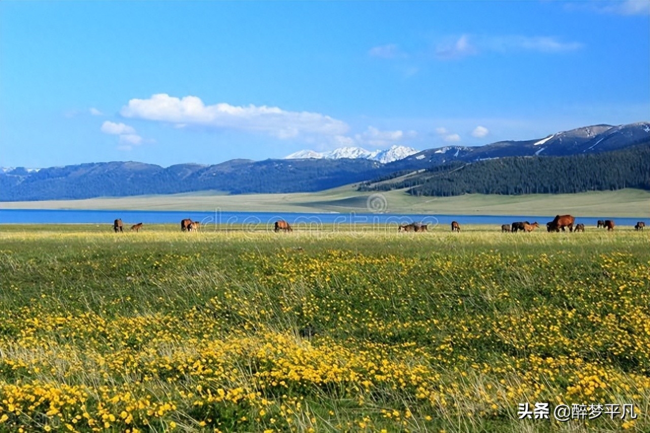 赛里木湖海拔2000多米,东西长约30公里,南北宽约25公里,周长90公里,水域面积455——460平方公里,呈椭圆形,最大水深92米,蓄水总量210亿立方米。他是著名的高山冷水湖,以前根本没有鱼,1998年开始从俄罗斯引进高白鲑、凹目白鲑等冷水鱼养殖,还是很成功。这个景区有点不错,门票145(含自驾),不买票也可以走里面的公路,但是里面不能停车,不能超速,停了就收费。果子沟大桥就在附近,在那里可以停下来看看,风景美轮美奂。这里还是以自然生态风景为主,湿地,湖泊,草甸,花草,高山。。。。。。。。