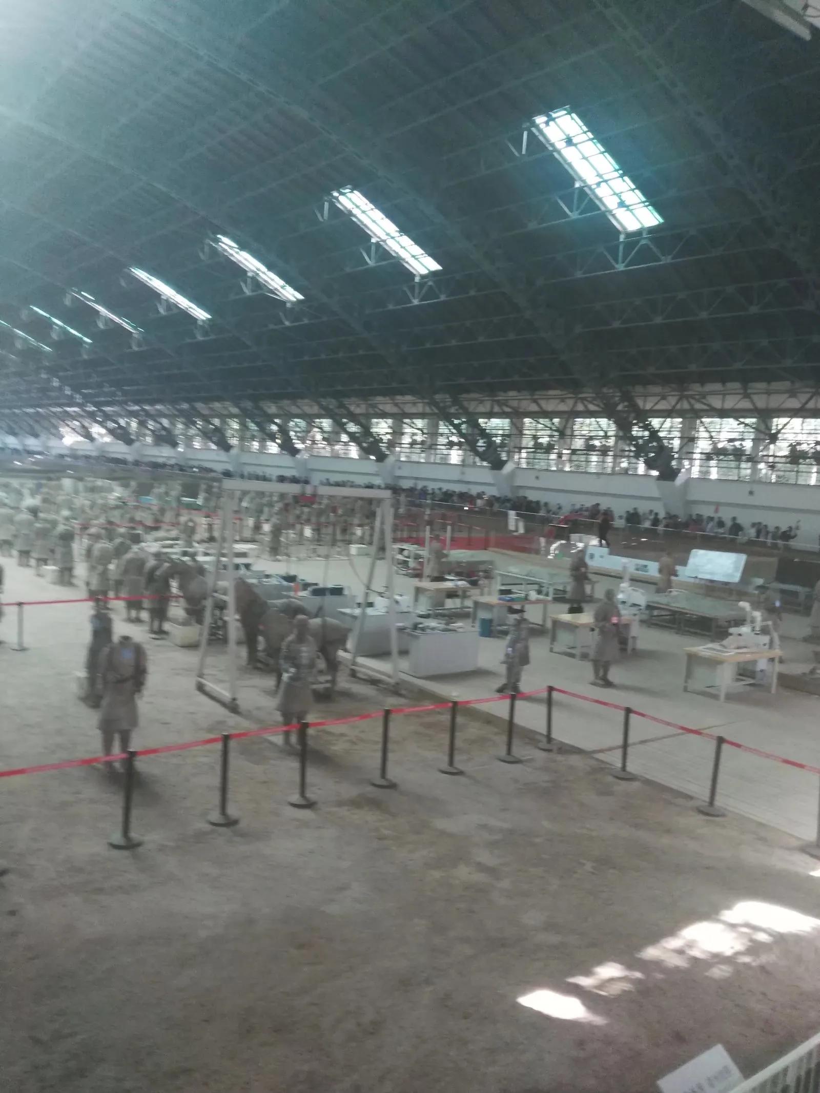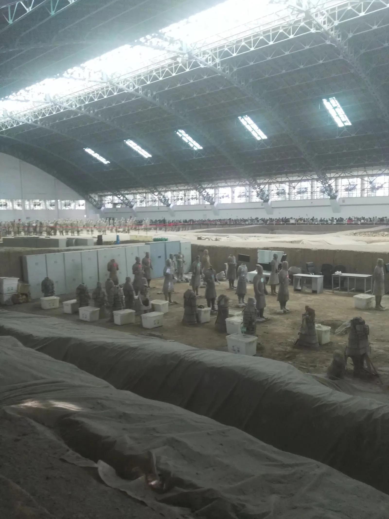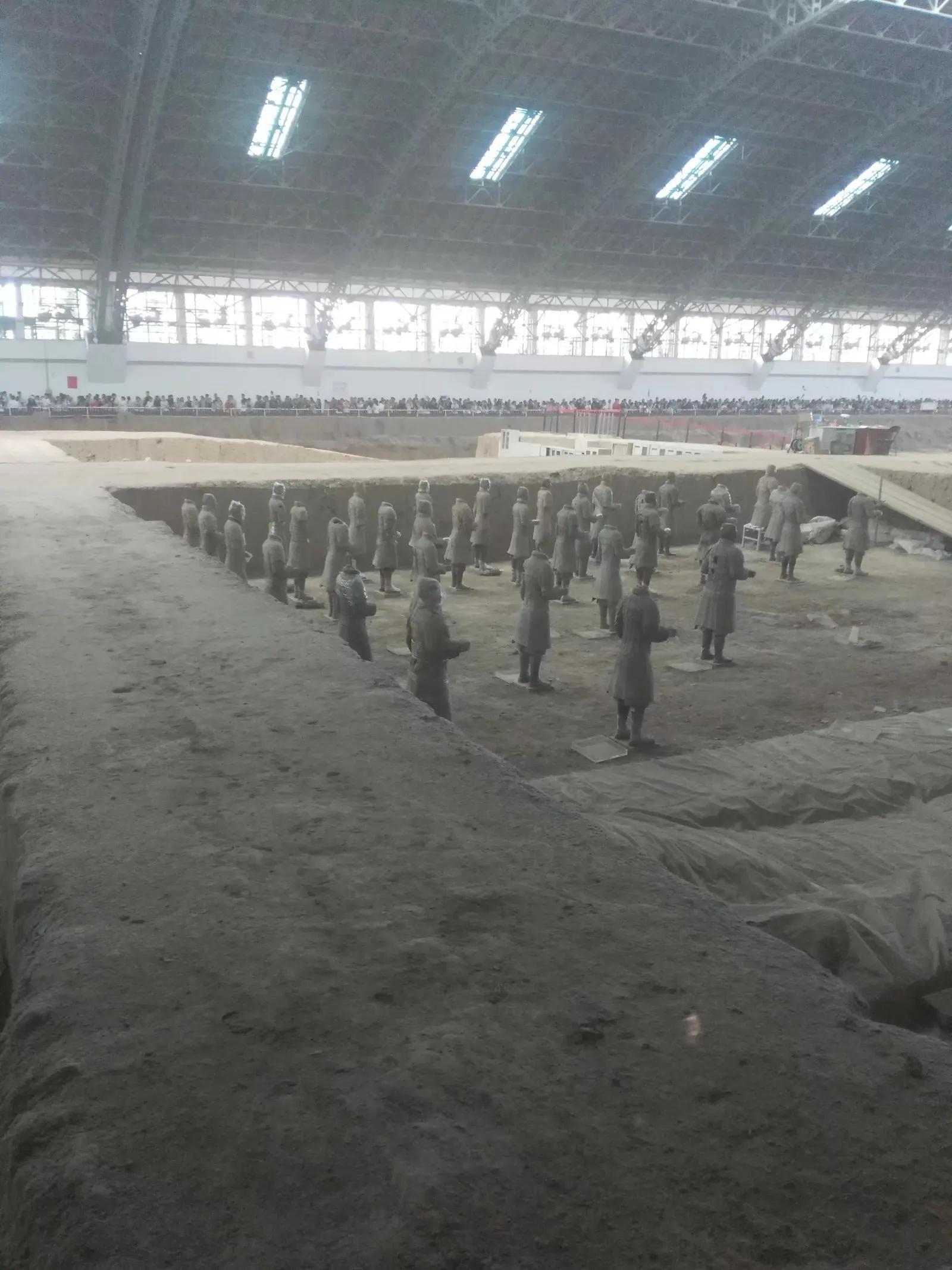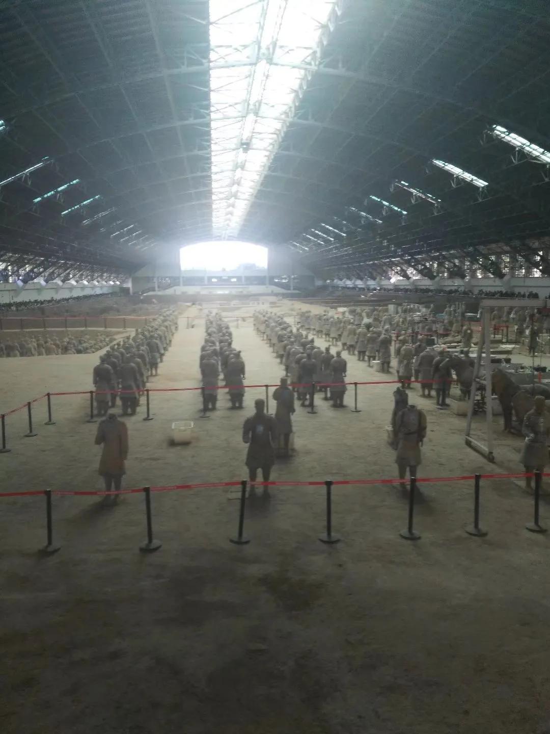 2018,天清气爽,一家人游秦兵马之俑,从宁波直飞西安,网上购好票后,乘车来到兵马俑,一路上正是陕西石榴好时,二三元一个,挺甜。到了门囗,好家伙,人山人海,排队几十米,进了里面还要跟着大队走几百米,再过一个门庭岗囗,才是兵马俑三个馆,其实对小孩子来说就是看个热闹。