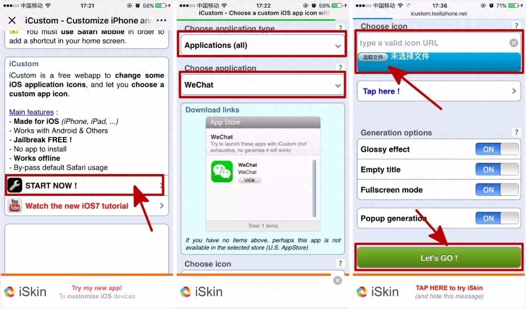 2、 再点击【type a valid icon URL】,在手机里选择一张照片,照片选择完成,点击绿色的【Let' GO!】