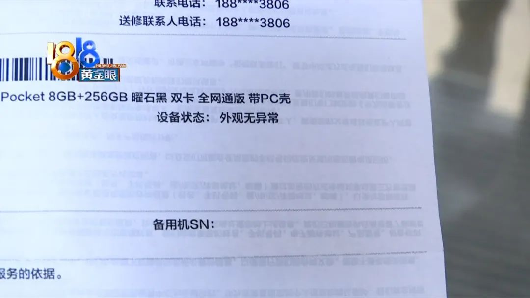 :“(那刚才那张单子是谁给的,设备外观无异常?)我会给你取机单,那是我们中间的受理单,我再待会给你一张单子,它是有取机的,有服务报告。(刚才那张单子是属于什么单子,就是设备外观无异常那个?)那是我们的维修内部单,我会给你一张。(等一下,你们的维修内部单上已经写了设备外观无异常啊。)”