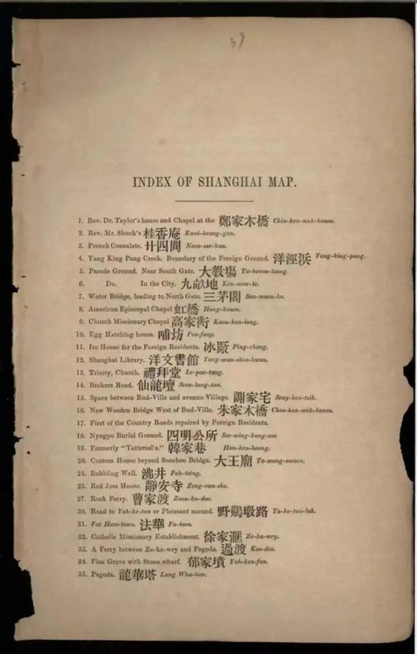 《上海年鉴(1852)》原版中的上海地图及地名对照