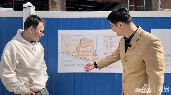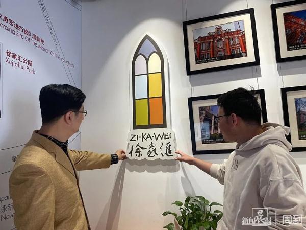 记者和嘉宾来到土山湾博物馆,目前土山湾博物馆正在进行局部升级改造,博物馆外面设置了围挡。非常巧的是,在围挡上,记者看到了土山湾早期使用的英文名称和现在土山湾博物馆的英文名称是一致的。按照资料介绍,土山湾博物馆是在2010年开馆的,如果按照那位对“ZIKAWEI LIBRARY”有异议的读者观点,那这次更新之后的土山湾博物馆是不是也不能使用Tou-Se-We了呢?