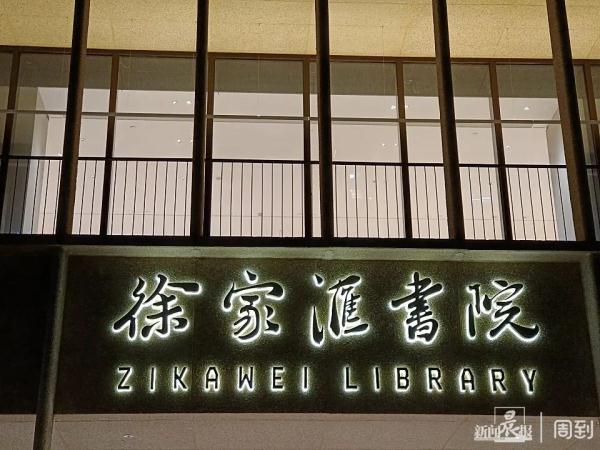 徐家汇书院是上海新地标,在今年元月一日正式开馆,晨报曾率先在2022年12月8日进行报道(见报道)。当时正好是夜间,记者在现场看到工人师傅夜间正在升降机上安装“徐家汇书院”的大字,而这座略带神秘感的新建筑终于向世人亮出自己的充满文艺气息的名字,而其英文名为“ZIKAWEI LIBRARY”(见下图)。