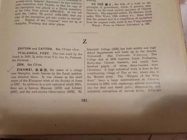 英国汉学家库寿龄著《中国百科全书》(1917年上海版)记载的条目“ZIKAWEI”