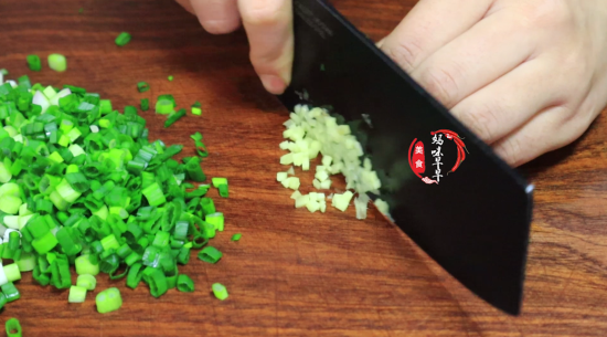 第三步、准备几根小葱,洗净后切成葱花,生姜去皮后切成姜末。