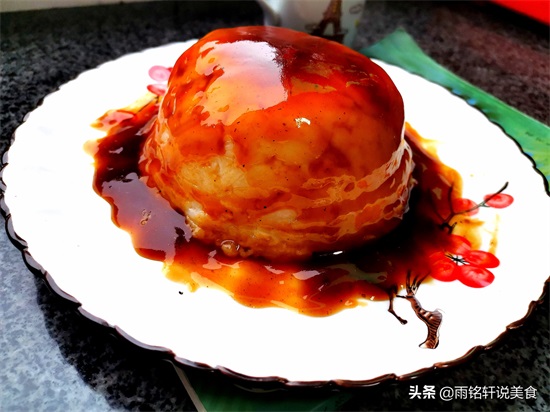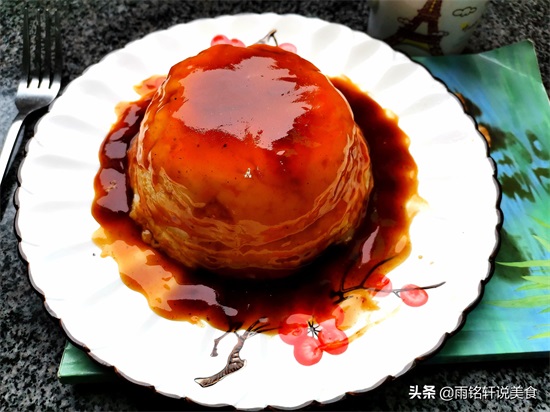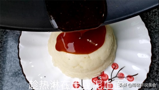 第八步:把炒好的酱汁趁热倒在土豆泥上面即可享受美食了。