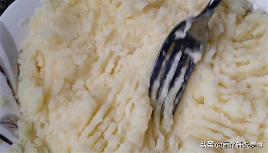 第三步:用叉子把它压成无颗粒的土豆泥备用。