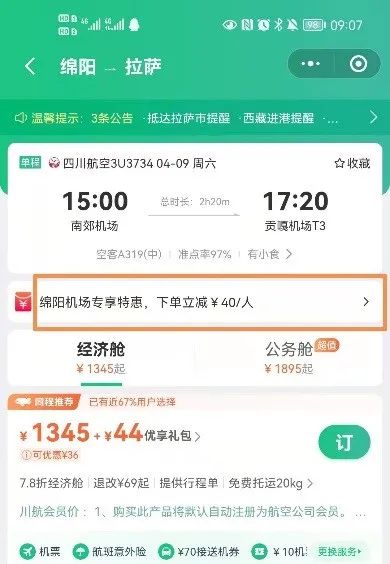 为成都市、广元市、德阳市、南充市、遂宁市、眉山市、阿坝州;4. 乘机人为成人、儿童(婴儿不适用)。如果乘机人满足优惠,将在信息填写页显示下单立减的优惠。