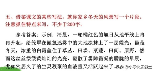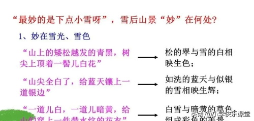 3.“害了羞”写出了微黄的阳光射在薄雪上的颜色,生动形象。