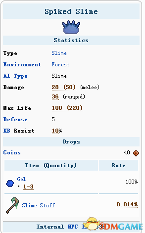 他们可以通过2格空间跳跃。他们可以用一个史莱姆雕像召唤,在战斗中有时也被屎王召唤。