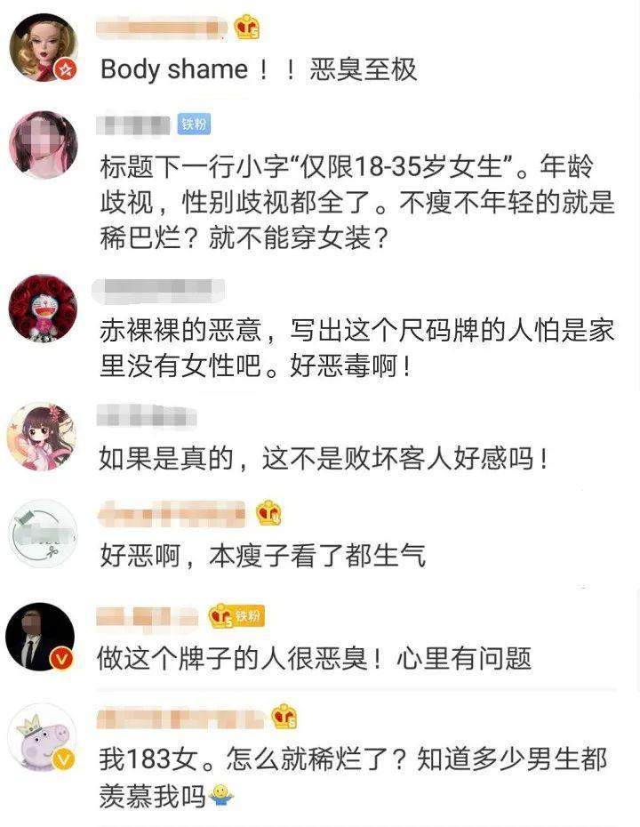 女装尺码建议表措辞引发争议