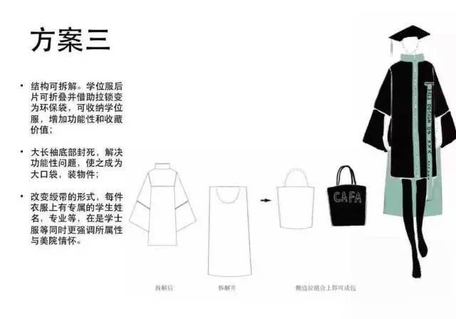 最重要的是,这款学位服还有一衣多穿的特点。“它是可拆解的,背片有一个拉锁可以拉开,可以变成一个收纳袋,把整套学位服轻松收纳起来。发给大家以后,美院的同学们也都特别有创意,愿意做新的尝试”。据说,还有人穿出了背心和超短裙的效果。
