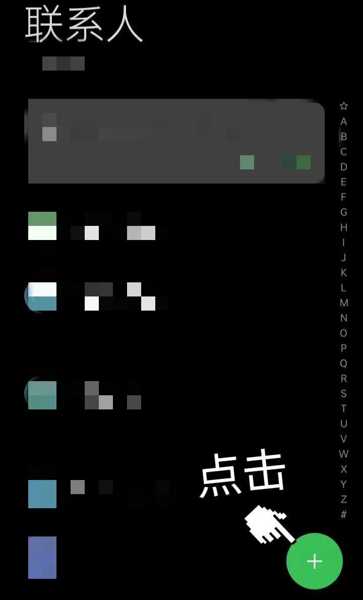 第二步:点击联系人图标后进入联系人页面,在这个页面点击加号图标,如图;