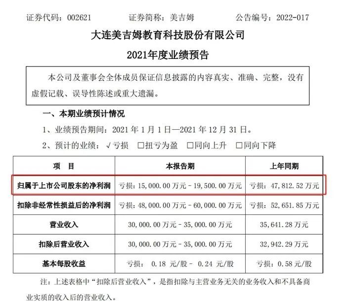 中新财经记者注意到,美吉姆近年来业绩并不太好。其业绩预告显示,预计2021年营收3亿元至3.5亿元,归属于上市公司股东的净利润亏损1.5亿元至1.95亿元。