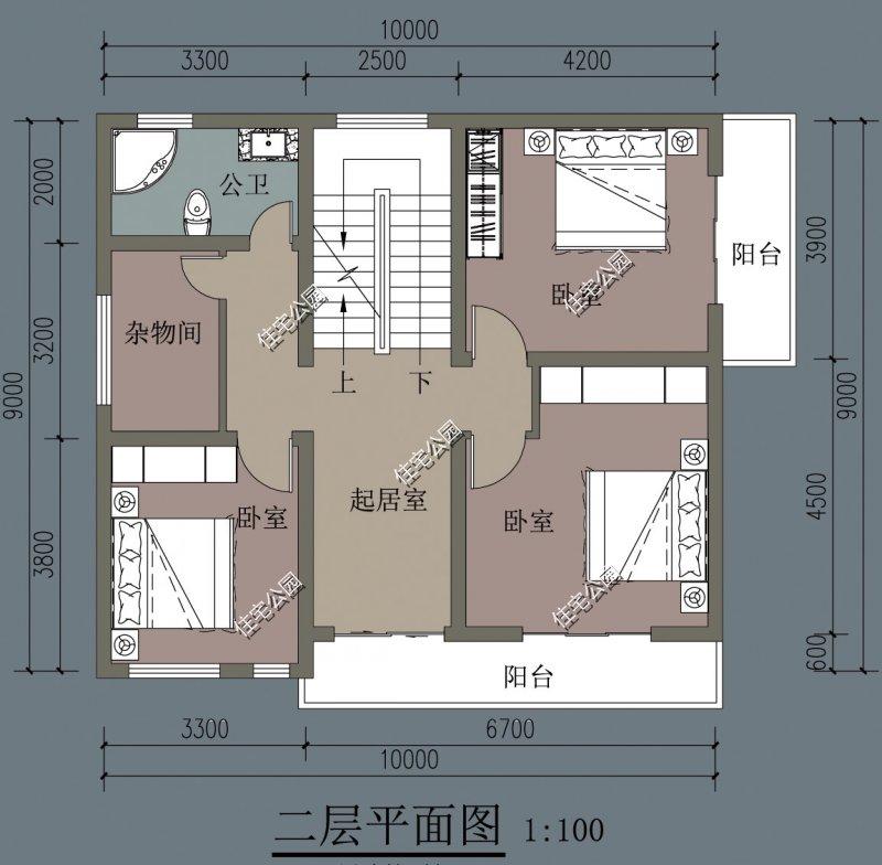 第6套:双入户门+多阳台+大露台,9×10米三层别墅,主体预算32万