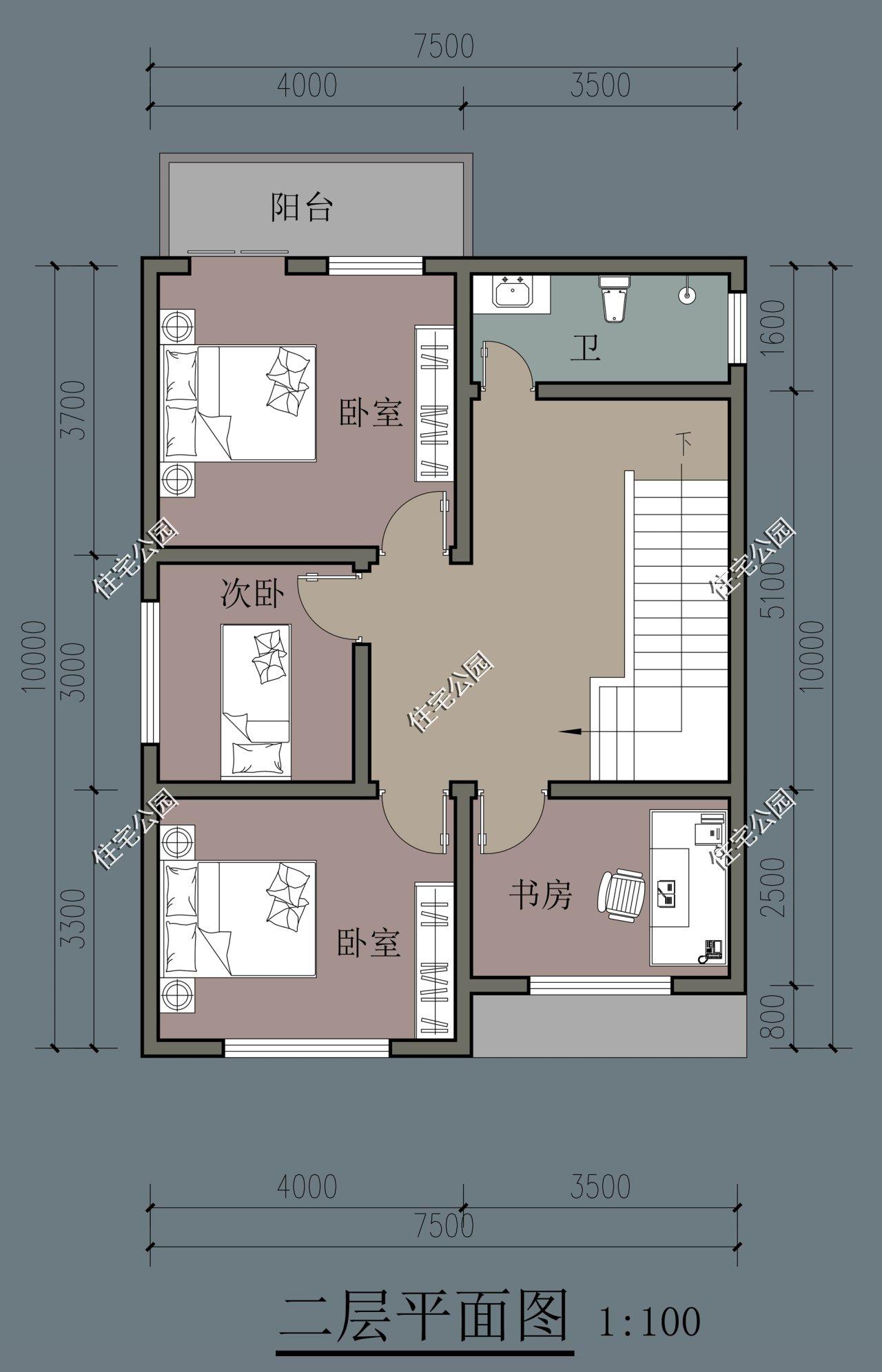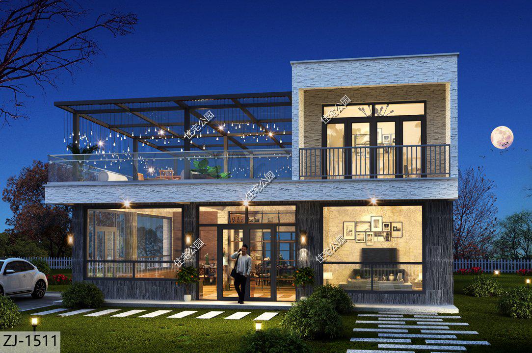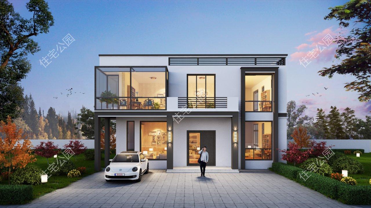 第3套:落地窗+平屋顶+双阳台,9×11米二层雅宅,主体预算25万