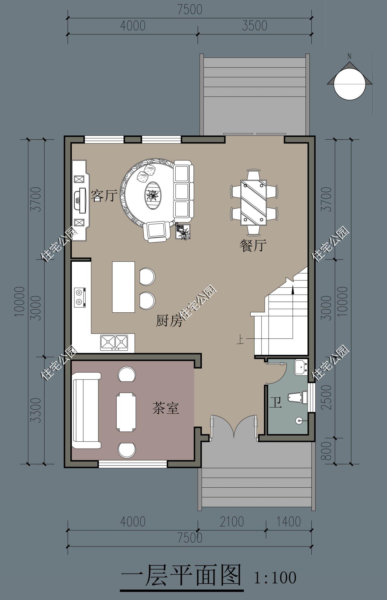 北面晾晒小阳台+开放式厨房,7×10米现代小宅,主体预算20万