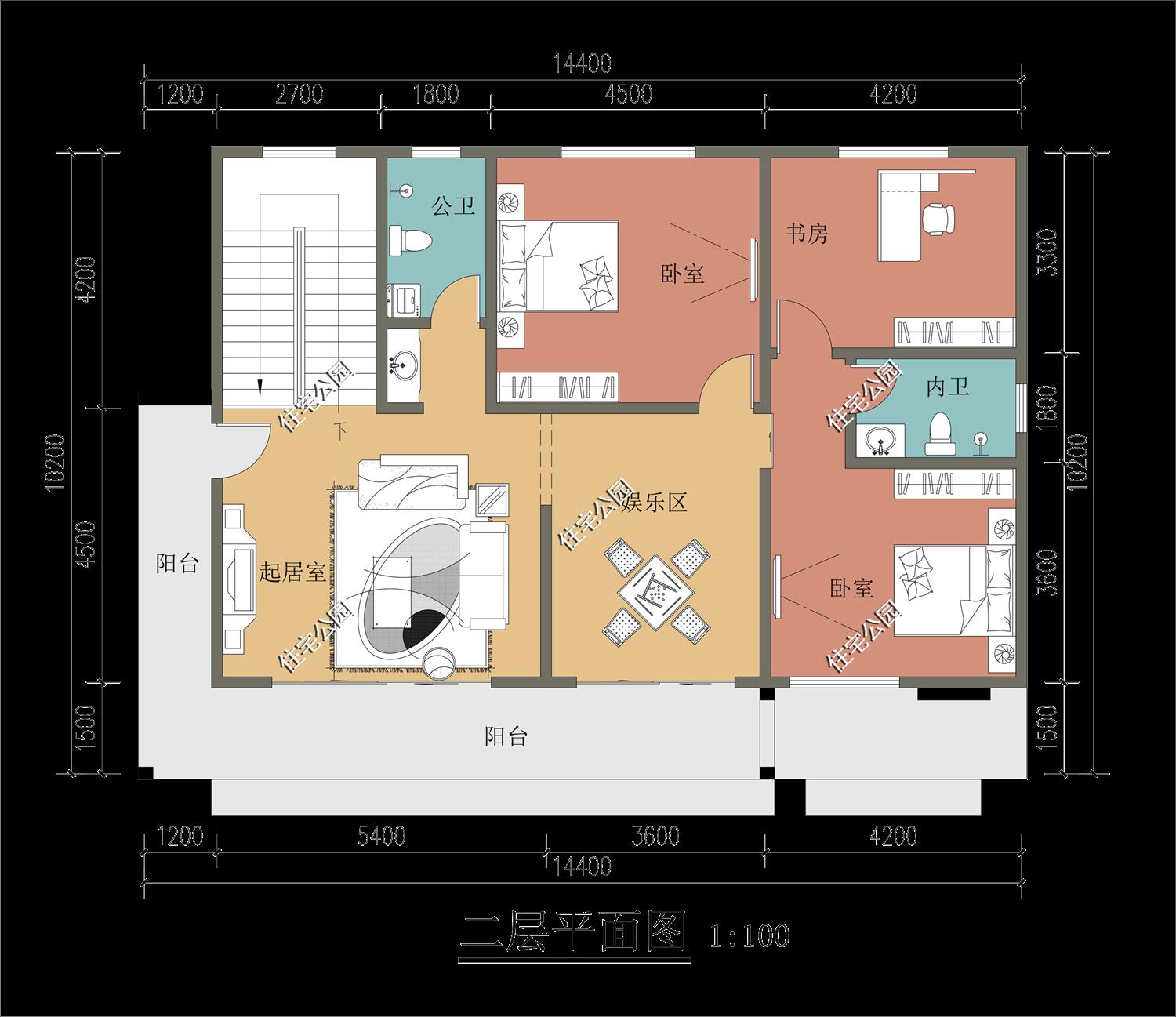 第1套:舒适阳台+大客厅+豪华套间,14×10米现代别墅,主体预算40万