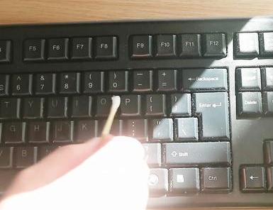 棉棒是家中常用之物,我们经常用它杀菌、消毒。使用棉棒蘸取一些清水,可以将键盘缝隙和键盘的边角擦拭一下,一会键盘便干净了。