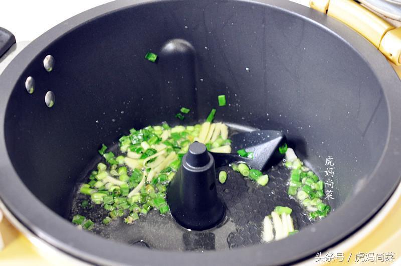 锅中加入少许油,热后放入葱姜末,煸炒出香味来。