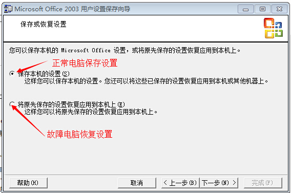 2、保存一个”“microsoftoffice ”用户设置。把这个设置恢复到故障电脑上即可。