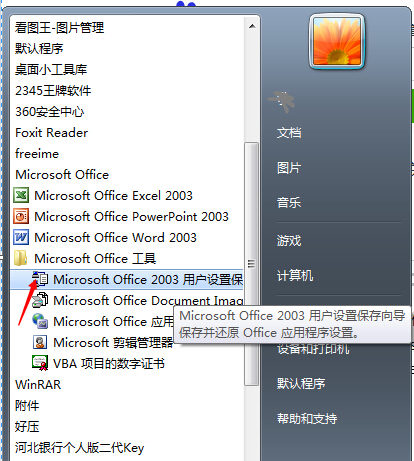 1、在一个无故障的电脑上依次点击“开始”-“程序”-“microsoftoffice”-“microsoft office工具”-“microsoft office用户设置和保存向导”。
