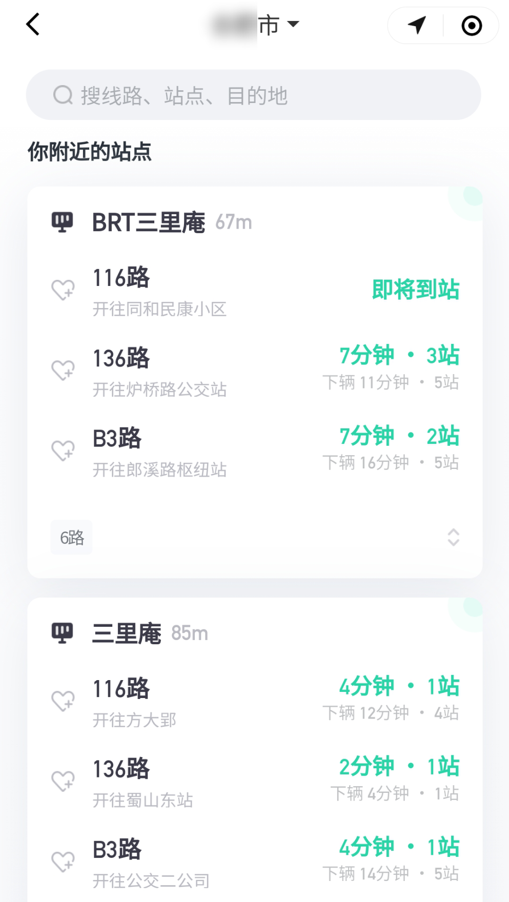 ,附近站点、线路运行时间以及到达时间,出行不用再等车,瞄准时间去站点即可: